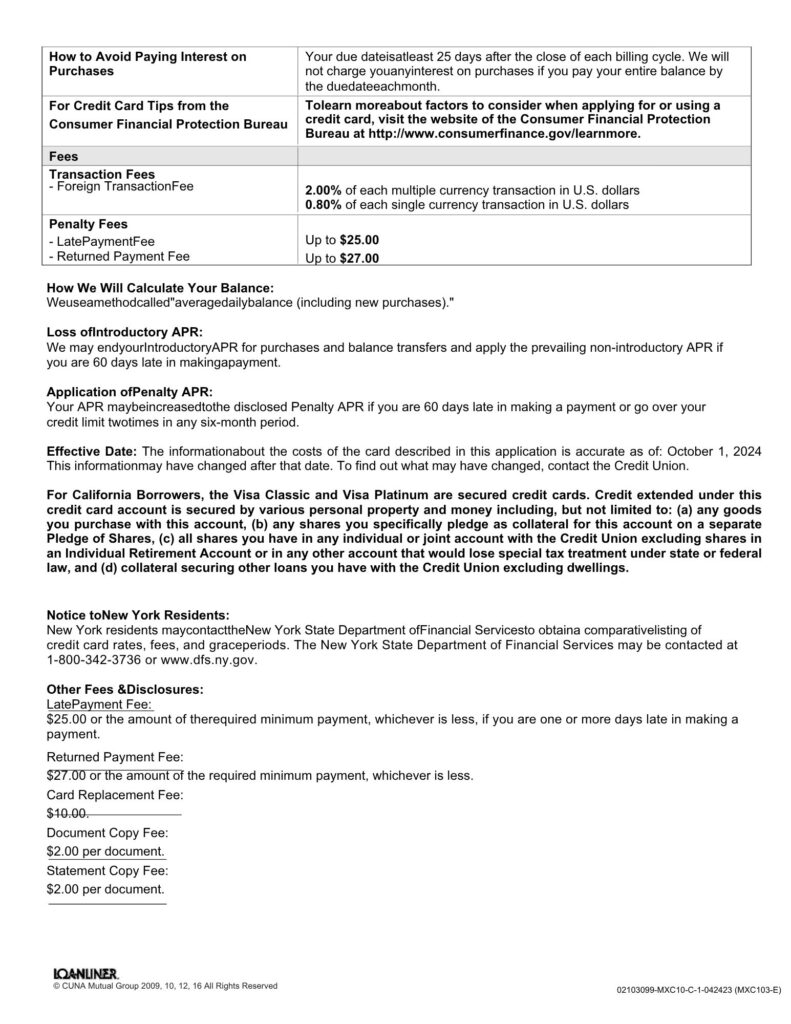 About TCFCU VISA Credit Cards